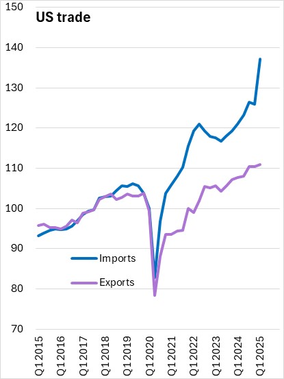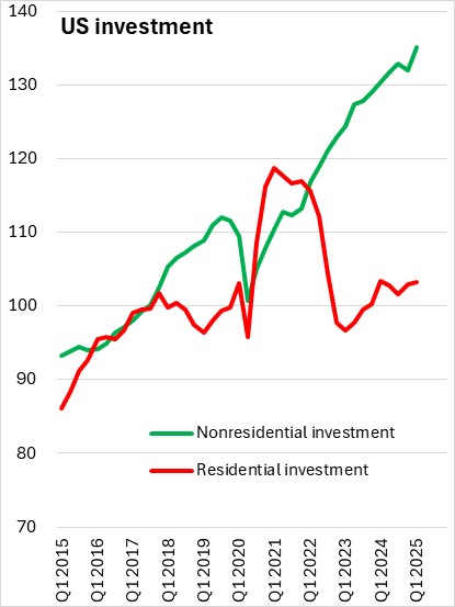 The decrease in real GDP was driven by increases in imports (+41.3%), which are subtracted from GDP, and declines in federal government defence spending (-8.0%) and non-defence spending (-1.0%). These were partially offset by increases in exports (+1.8%), state and local government spending (+0.8%), residential investment (+1.3%), and non-residential investment (+9.8%)