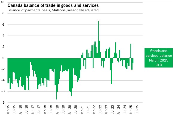 May 06, 2025CANADA TRADE BALANCE, MARCH 2025 Month-over-month (March 2025 vs February 2025)