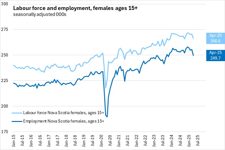 Nova Scotia’s labour force fell by 2,400 (-0.4%) to 556,500 in April 2025.