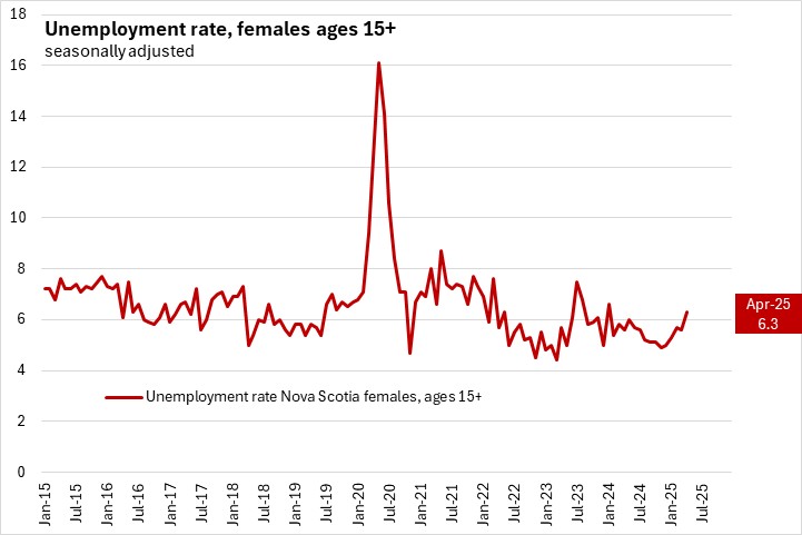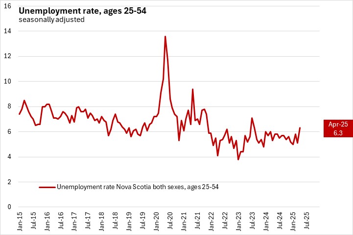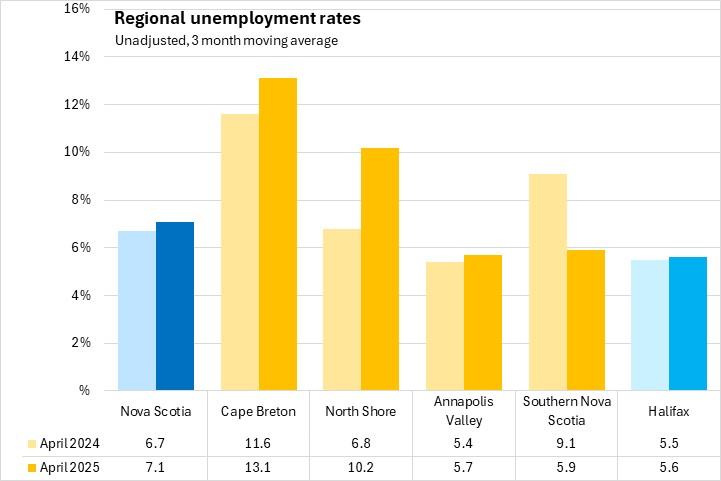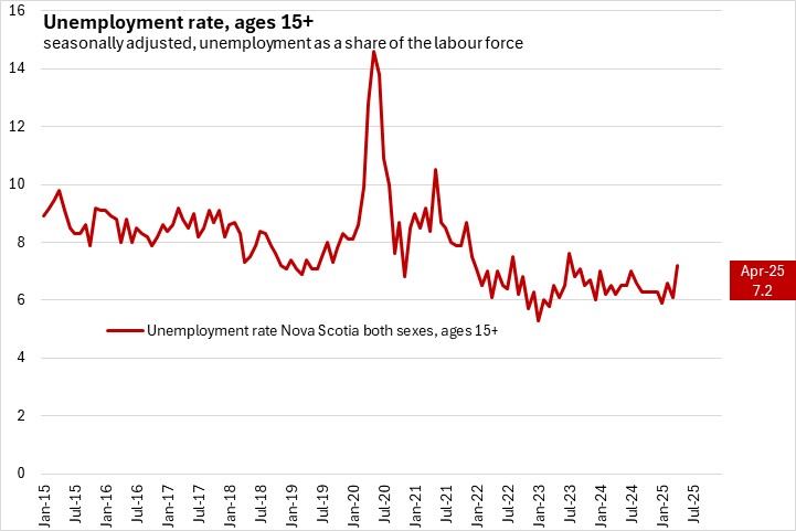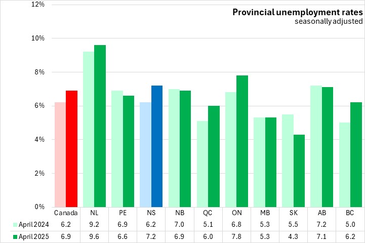 With employment falling faster than labour force, Nova Scotia's unemployment rate increased 1.1 percentage points to 7.2% in April 2025.
