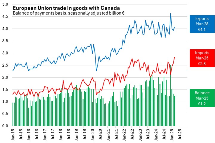- the European Union's surplus in goods trade with Canada narrowed by €92.6 million to €1.2 billion.