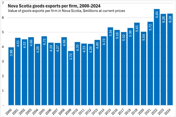 The value of goods exports per firm edged up to $6.28 million in 2024.