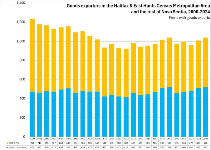 The Halifax and East Hants Census Metropolitan Area accounted for about half of goods exporters in 2024.