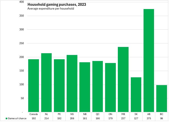 On average, Nova Scotian households spent more on games of chance in 2023 than the national average.