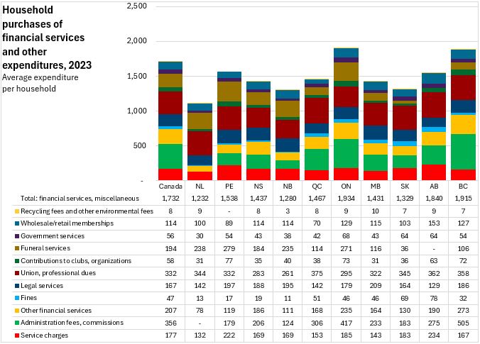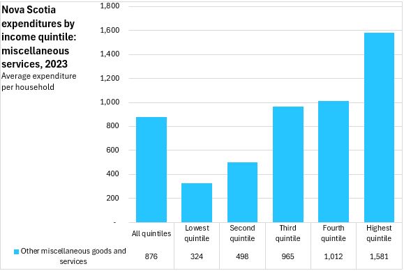 Among other expenditures, Nova Scotians spend less on average for financial services and other expenditures (totaling $1,437) compared to the national average in 2023.