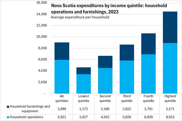 Source: Statistics Canada. Table 11-10-0222-01 Household spending, Canada, regions and provinces; Table 11-10-0223-01 Household spending by household income quintile, Canada, regions and provinces; Table 11-10-0228-01 Dwelling characteristics and household equipment at time of interview, Canada, regions and provinces