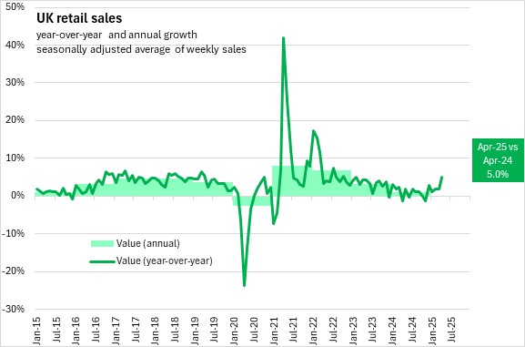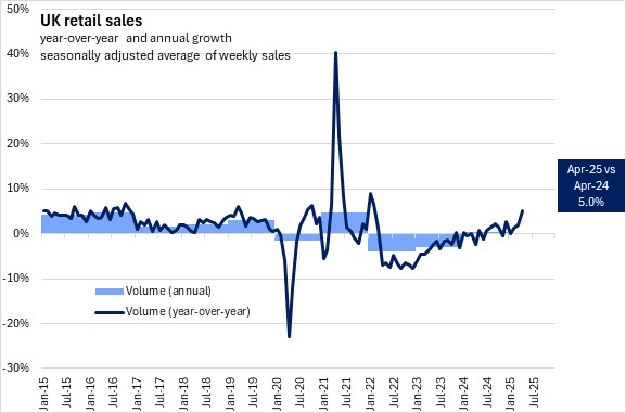 May 23, 2025UK RETAIL SALES, APRIL 2025 Month-over-month (April 2025 vs March 2025, seasonally adjusted)