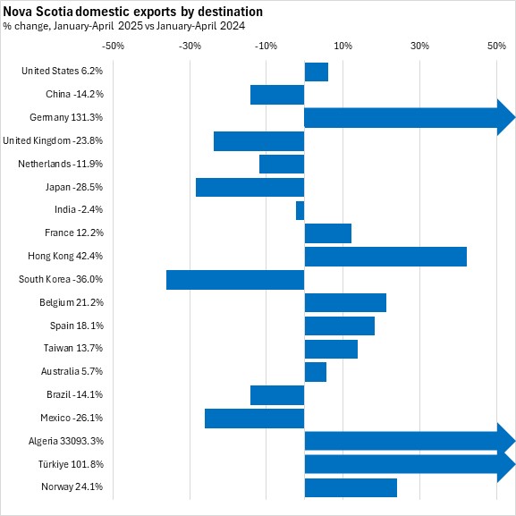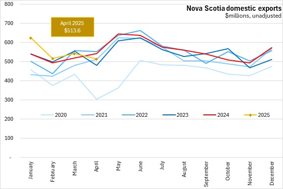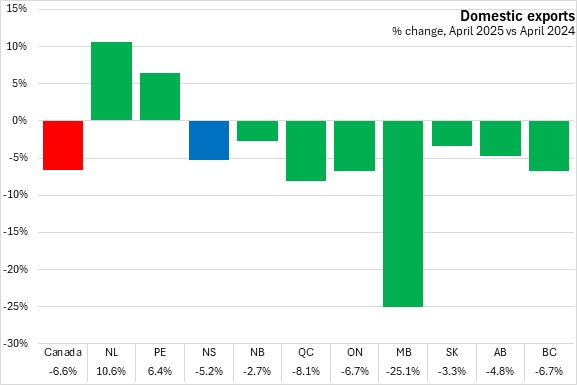 June 05, 2025NOVA SCOTIA INTERNATIONAL GOODS EXPORTS, APRIL 2025 Year-over-year (April 2025 vs April 2024, domestic exports on a customs-basis, unadjusted)