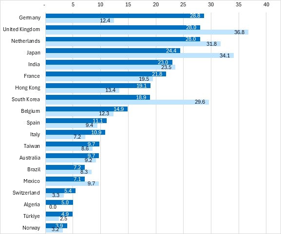 Among the other significant export destinations, year-to-date exports were up sharply to Germany, Hong Kong, as well as Algeria and Turkey (though those exports reflect much smaller values). The largest declines in year-to-date exports were to South Korea, Japan, and Mexico.