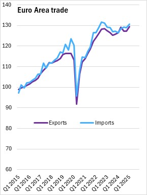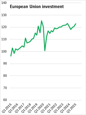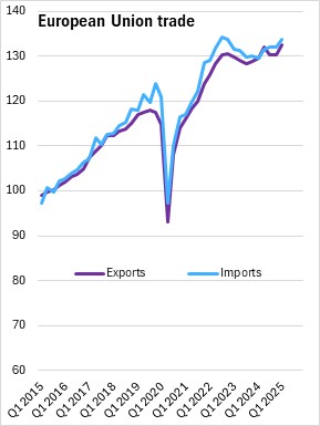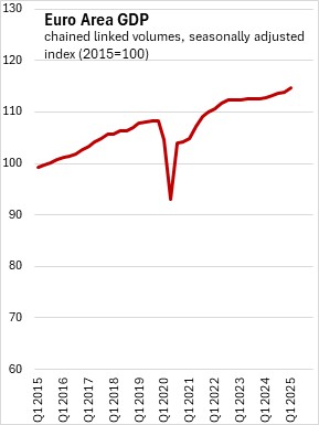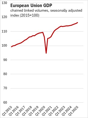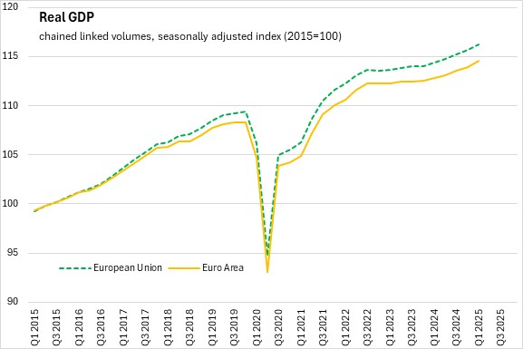 The European Union economy was 1.6% larger compared to the first quarter of 2024. The Euro Area economy was 1.5% larger in Q1 2025 than in Q1 2024.
