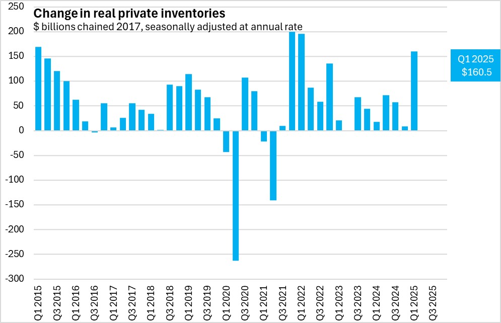 Private inventory investment was revised to $160.5 billion net accumulation.