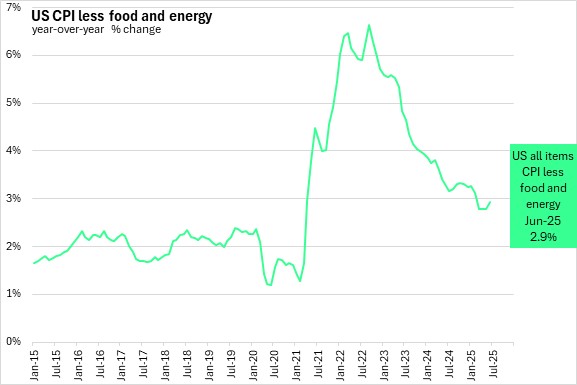 The US CPI excluding food and energy rose 2.9% compared to June 2024.