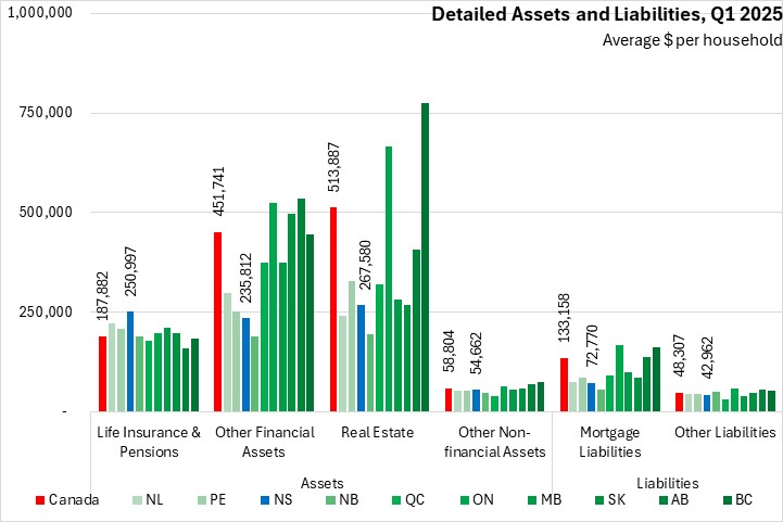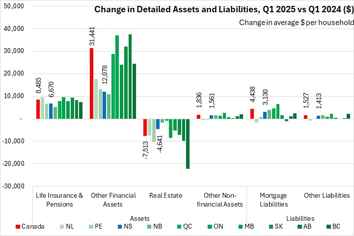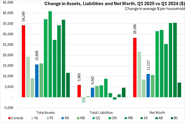 Household net worth grew in all provinces from Q4 2024 to Q1 2025.