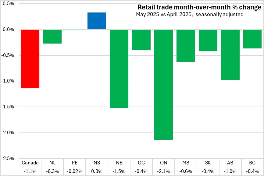 July 24, 2025RETAIL TRADE, MAY 2025 Monthly (seasonally adjusted, May 2025 vs April 2025)