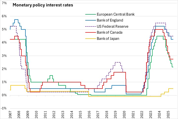 July 24, 2025EUROPEAN CENTRAL BANK MONETARY POLICY The European Central Bank (ECB) announced today that it would leave the three key ECB interest rates unchanged. The interest rates on the deposit facility, main refinancing operations and the marginal lending facility will remain at 2.0%, 2.15%, 2.4% respectively.