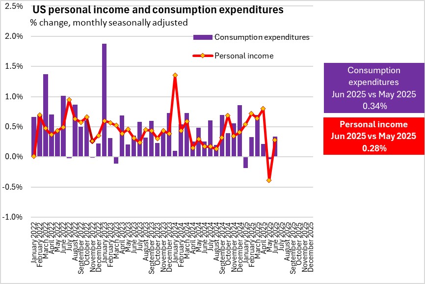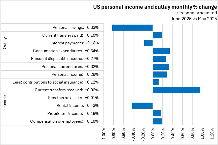July 31, 2025US PERSONAL INCOME AND OUTLAY, JUNE 2025 Month over month (June 2025 vs May 2025, seasonally adjusted)