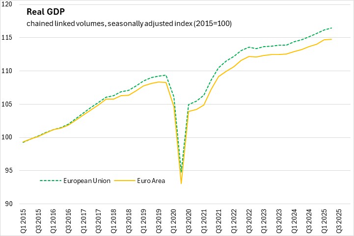 The European Union economy was 1.5% larger compared to the second quarter of 2024. The Euro Area economy was 1.4% larger in Q2 2025 than in Q2 2024.