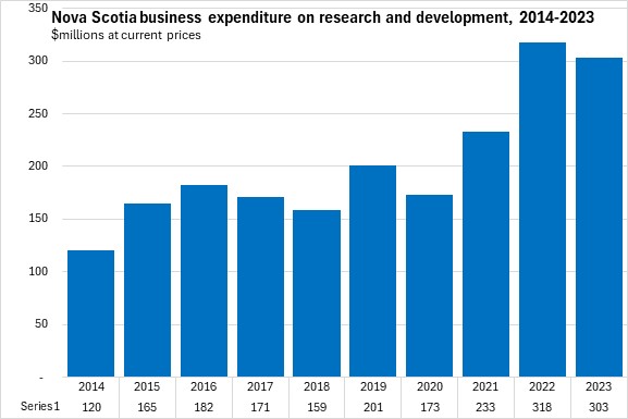 Nova Scotia's industrial research and development spending declined from $318 million in 2022 to $303 million in 2023.