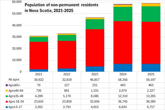 The number of non-permanent residents in Nova Scotia as of July 1, 2025 was 59,197, with the overwhelming majority of non-permanent residents falling between the ages of 18 and 34.