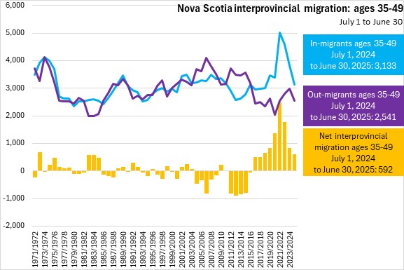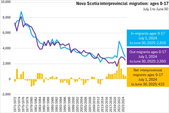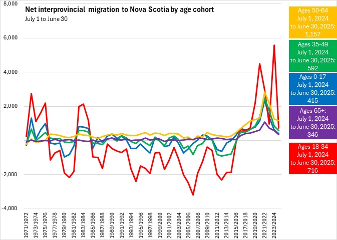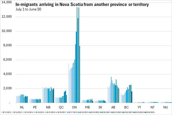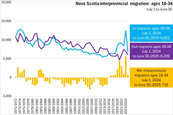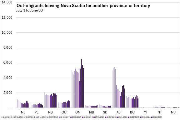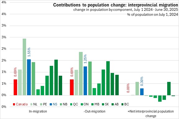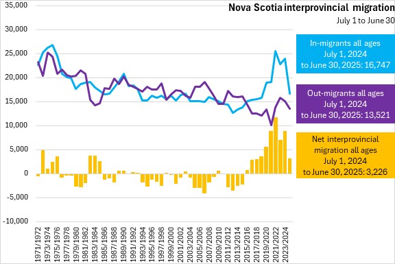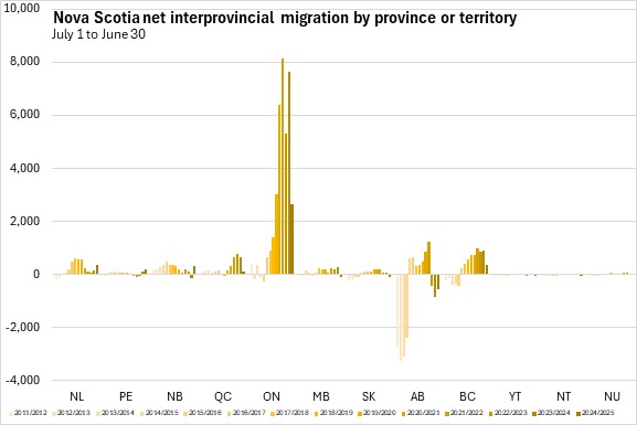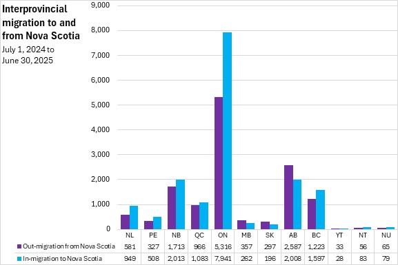 Net interprovincial migration with Alberta remains the most substantial net drain for Nova Scotia.