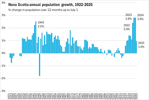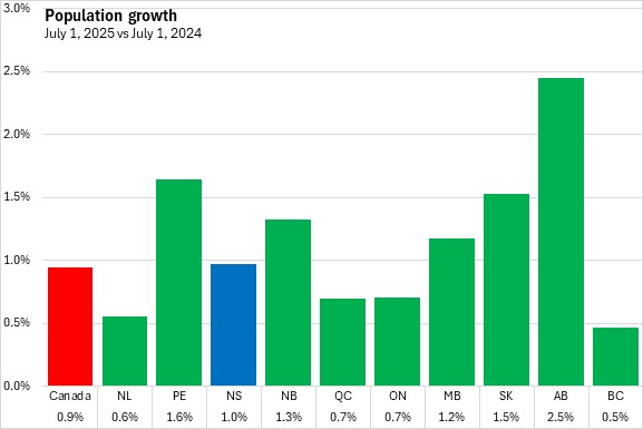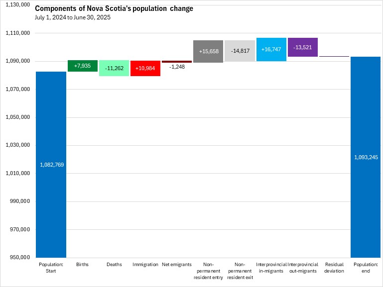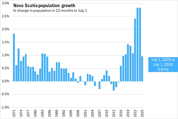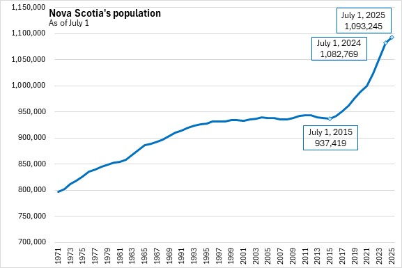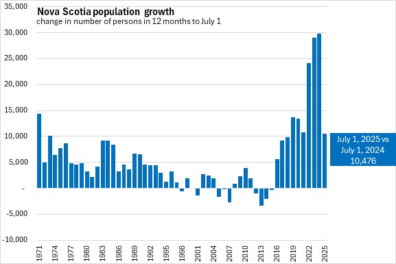 Nova Scotia's July 1, 2024 to July 1, 2025 population increase was 10,476, a smaller gain that in any of the previous 6 years.
