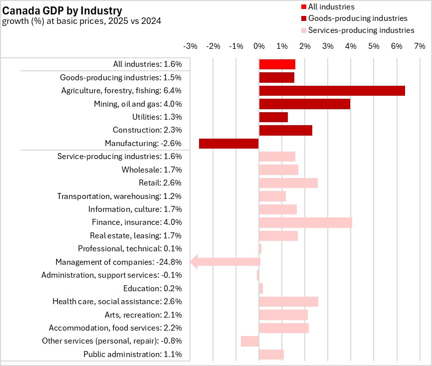 The Canadian economy was 1.6% larger in 2025 when compared to 2024.