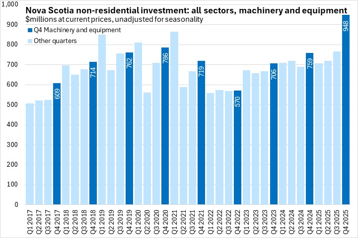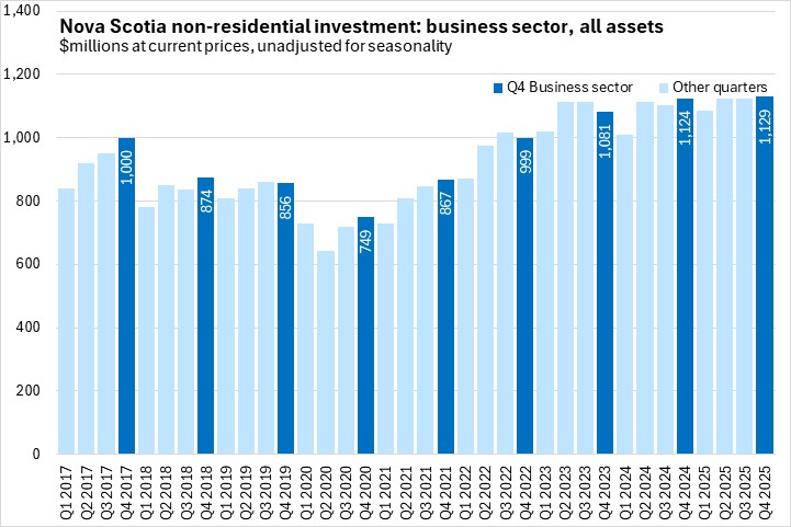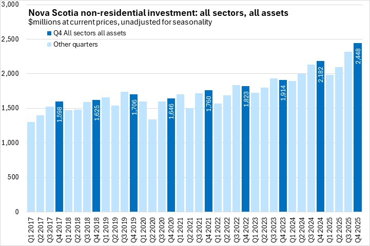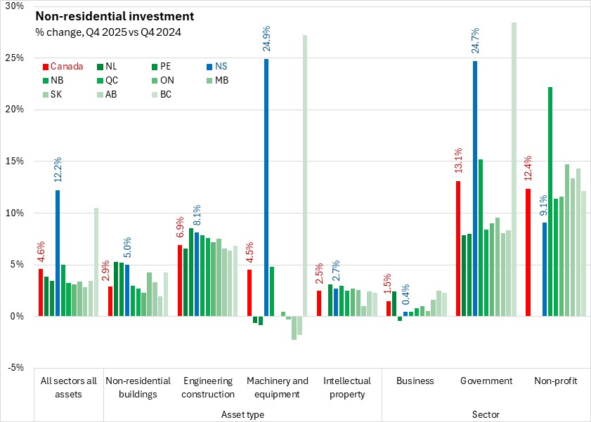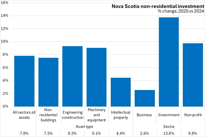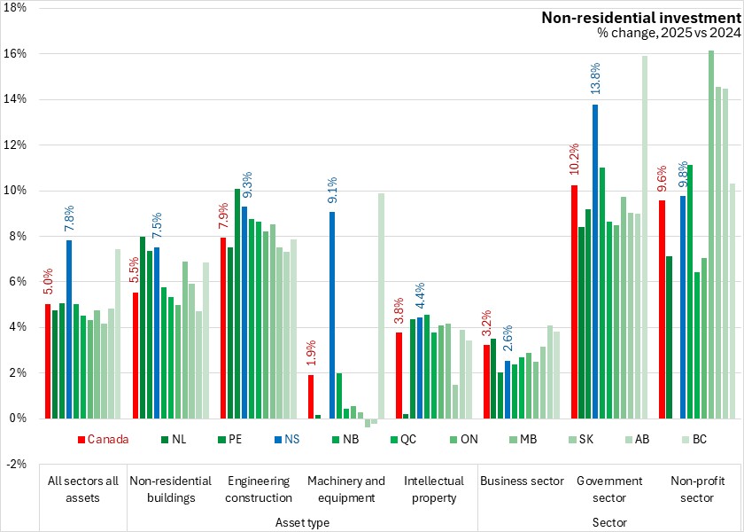 Comparing 2025 with 2024, Nova Scotia's non-residential capital investment was up 7.8% - the strongest growth among provinces. National investment levels were up 5.0% in 2025.