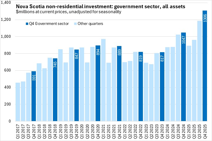Nova Scotia's investment in government sector assets was up 13.8%, outpacing national government sector investment growth of 10.2%.