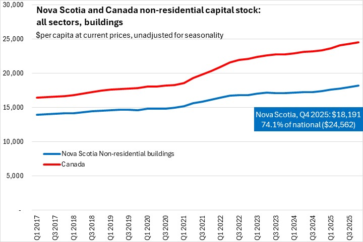 Nova Scotia's non-residential capital stock per capita has grown more quickly since 2020.