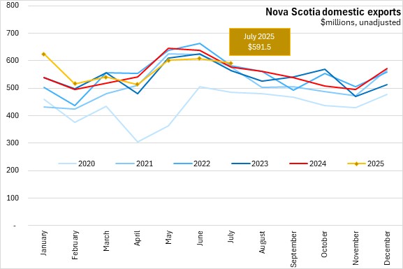 Nova Scotia international goods exports were $591.5 million in July 2025, a growth of 2.7% compared to July 2024.