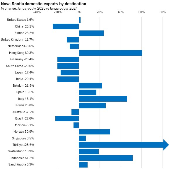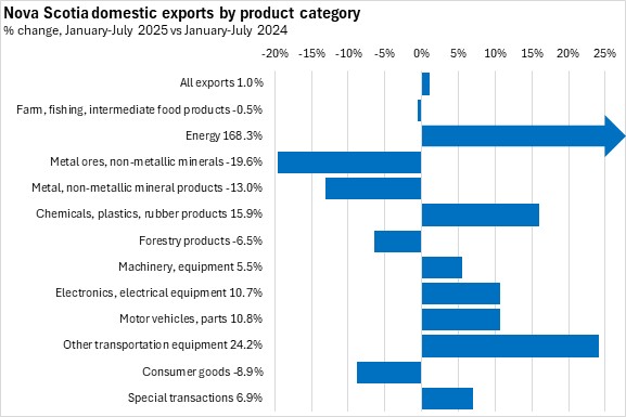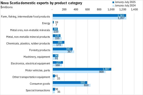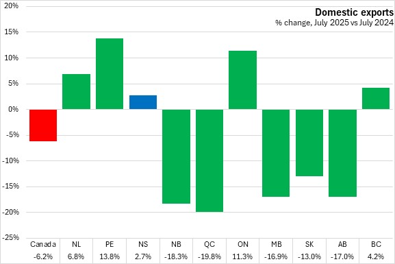 September 04, 2025NOVA SCOTIA INTERNATIONAL GOODS EXPORTS, JULY 2025 Year-over-year (July 2025 vs July 2024, domestic exports on a customs-basis, unadjusted)