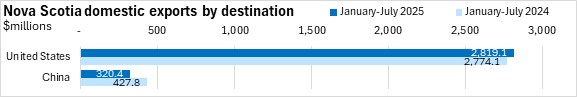 China is Nova Scotia's second largest export destination and exports declined 25.1% to $320.4 million in January-July 2025.