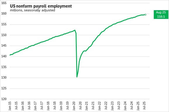 The increase of 22,000 in US nonfarm payroll employment was weaker than the revised growth of 79,000 reported for July 2025.