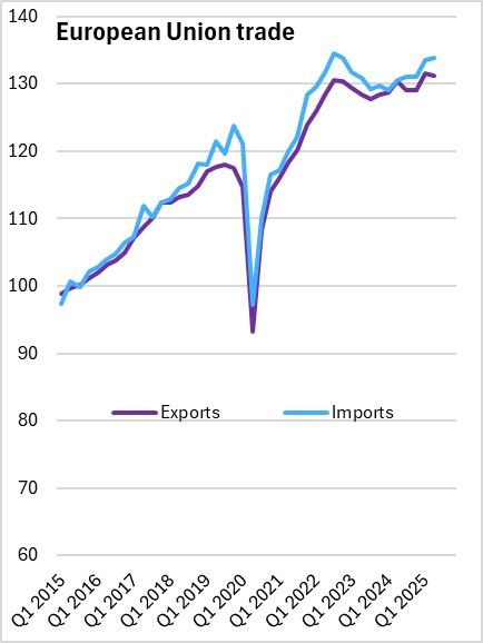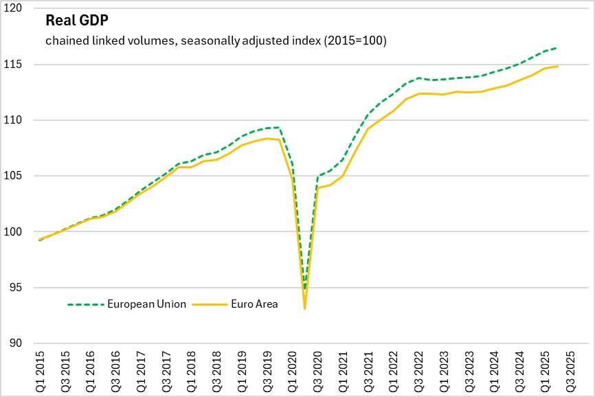 The European Union economy was 1.6% larger compared to the second quarter of 2024. The Euro Area economy was 1.5% larger in Q2 2025 than in Q2 2024.