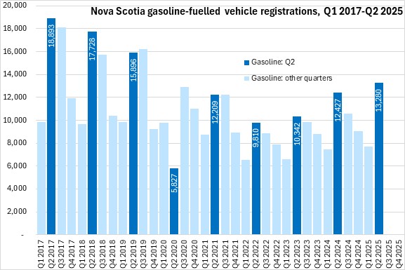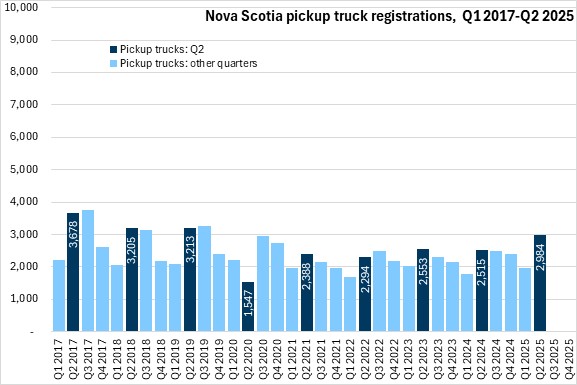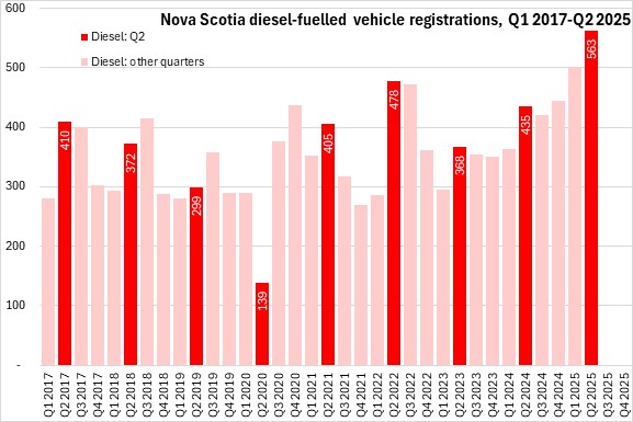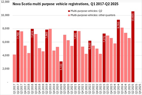 September 08, 2025NEW VEHICLE REGISTRATIONS, Q2 2025 Statistics Canada now reports Nova Scotia results for new motor vehicle registrations. Data are reported for all provinces except Newfoundland and Labrador and Alberta.