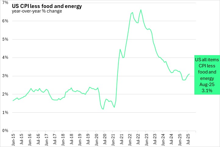 The US CPI excluding food and energy rose 3.1% compared to August 2024.