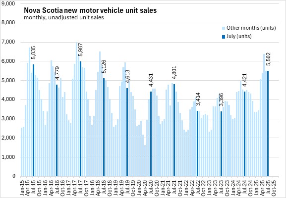 Nova Scotia's unit sales of 5,502 in July 2025 were stronger than those reported in the same month of any year since 2017.