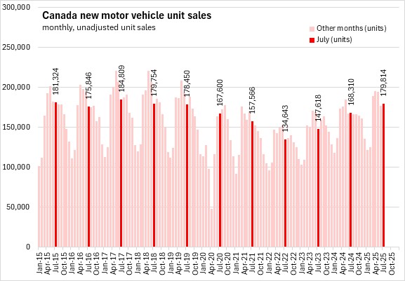 Source: Statistics Canada. Table 20-10-0001-01 New motor vehicle sales