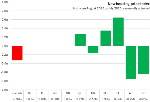 Source: Statistics Canada. Table 18-10-0205-01 New housing price index, monthly