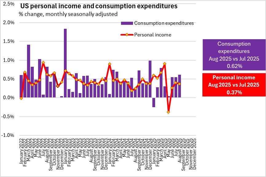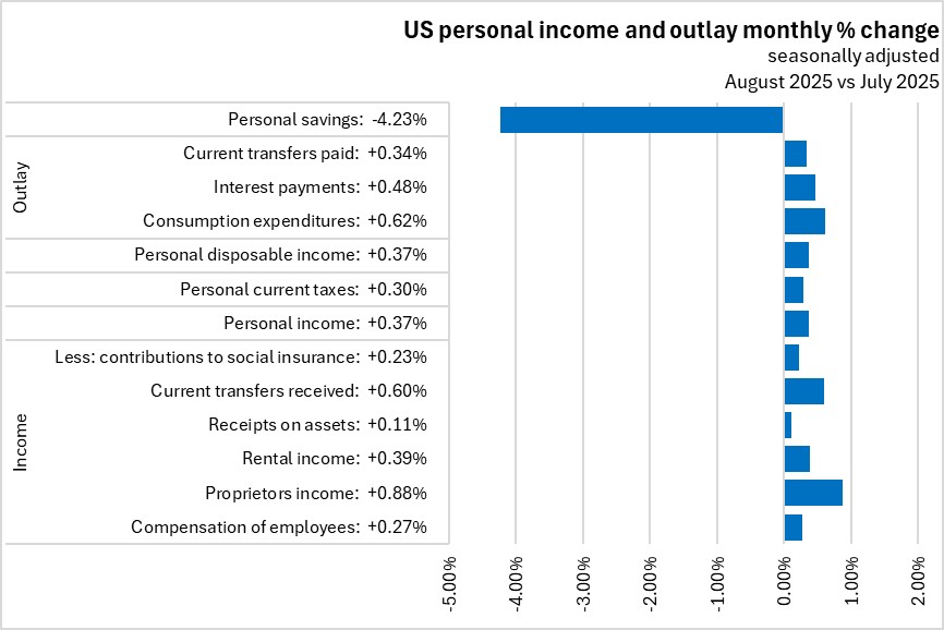 September 26, 2025US PERSONAL INCOME AND OUTLAY, AUGUST 2025 Month over month (August 2025 vs July 2025, seasonally adjusted)