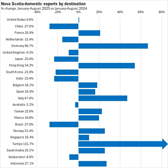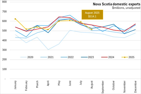 October 07, 2025NOVA SCOTIA INTERNATIONAL GOODS EXPORTS, AUGUST 2025 Year-over-year (August 2025 vs August 2024, domestic exports on a customs-basis, unadjusted)
