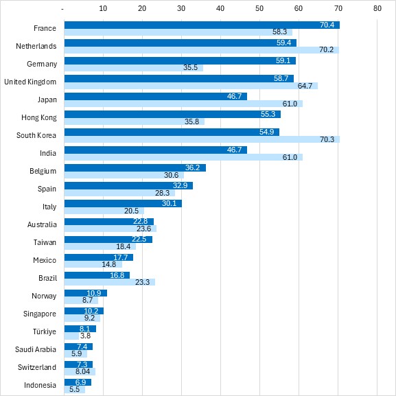 Among the other significant export destinations, year-to-date exports were up sharply to France, Hong Kong and Germany. There were also notably large percentage gains in exports to Italy and Türkiye, though these started from lower values in 2024. The largest declines in year-to-date exports were to China, South Korea, India, Japan and Brazil.