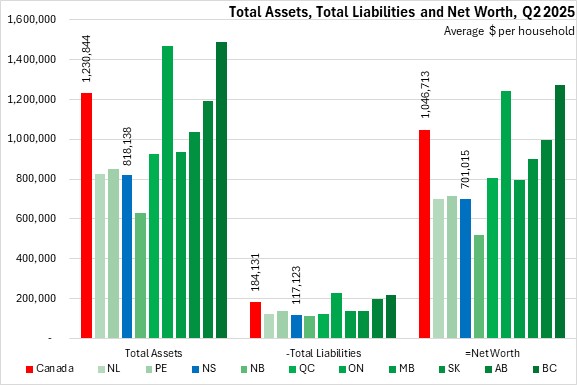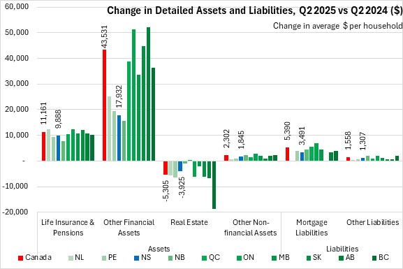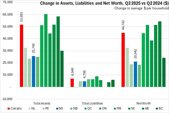 Household net worth grew in all provinces from Q1 to Q2 2025.