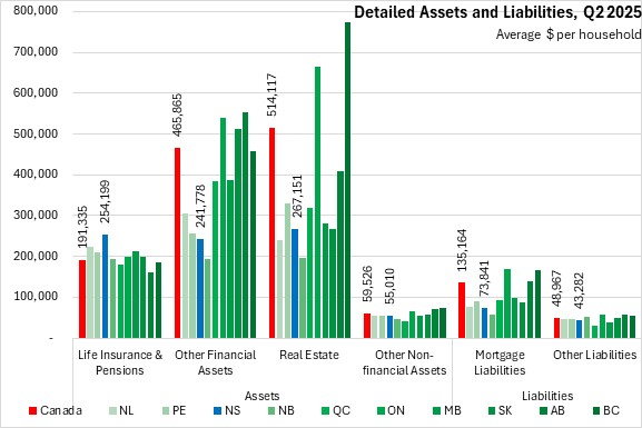 In detailed assets and liabilities Nova Scotians continued to have the highest life insurance and pension assets per household. British Columbia and Ontario had real estate assets far above the national average of $514,117.