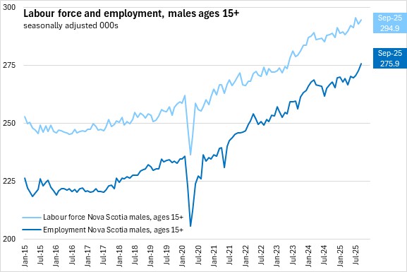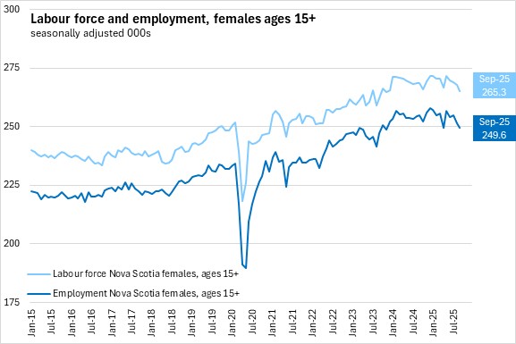 Nova Scotia’s labour force decreased by 200 (-0.04%) to 560,300 in September 2025.
