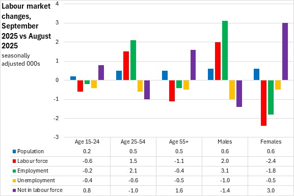 Age and gender cohorts (September 2025 vs September 2024, seasonally adjusted)