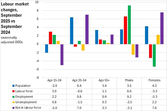 Ages 15+ (September 2025 vs September 2024, seasonally adjusted)