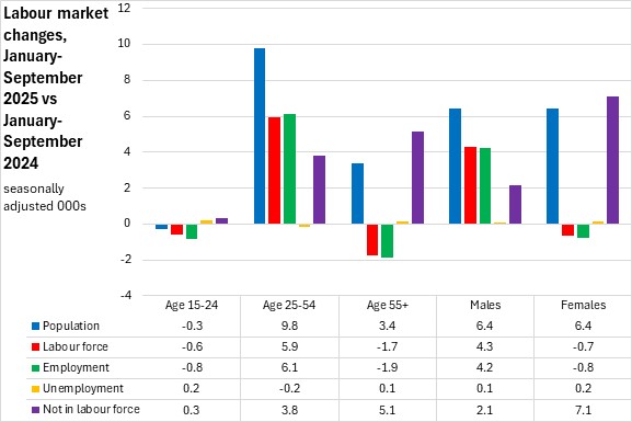 Ages 15+ (January-September 2025 vs January-September 2024, seasonally adjusted)