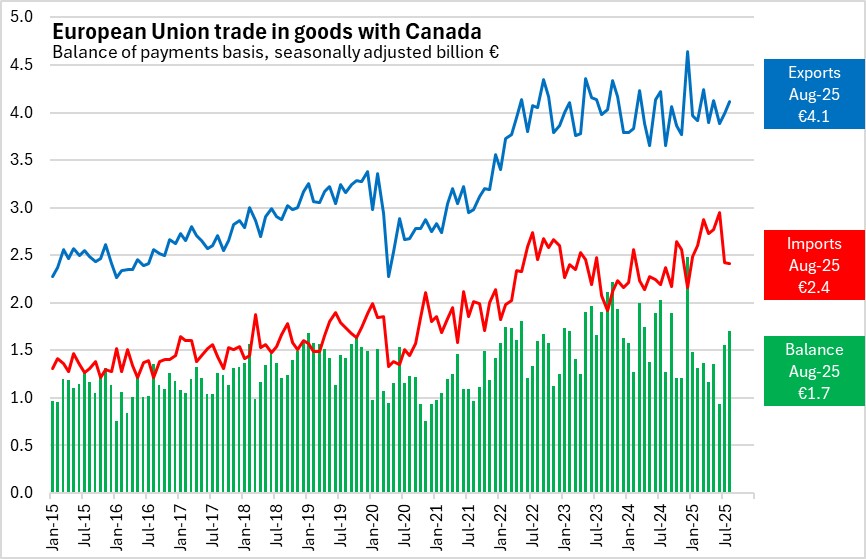 - the European Union's surplus in goods trade with Canada widened by €147.2 million to €1.7 billion.