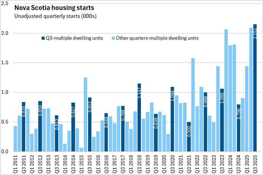 Starts for multiple dwelling units also grew 170.4% from 796 in Q3 2024 to 2,152 starts in Q3 2025.